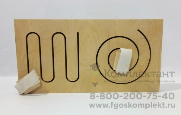 Лабиринт предназначен для развития двигательных навыков. Панель может устанавливаться как на столе, так и крепиться к стене на удобной высоте.Ребенок надевает крепления либо на руки, либо на ноги, и проводит рукой или ногой от начала до конца лабиринта.
