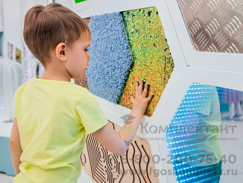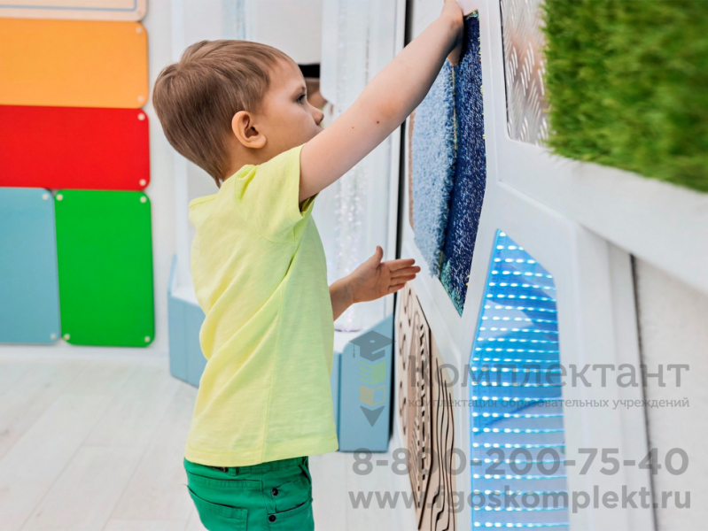 Это декоративные настенные модули, покрытые различными материалами и рельефами, для развития сенсорных систем малышей: зрения, осязания, слуха.